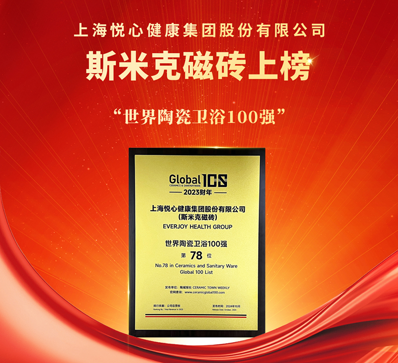 97国际磁砖在2023财年依附精彩的谋划体现,,,,,再次上榜“天下陶瓷卫浴100强”榜单。。。。。。